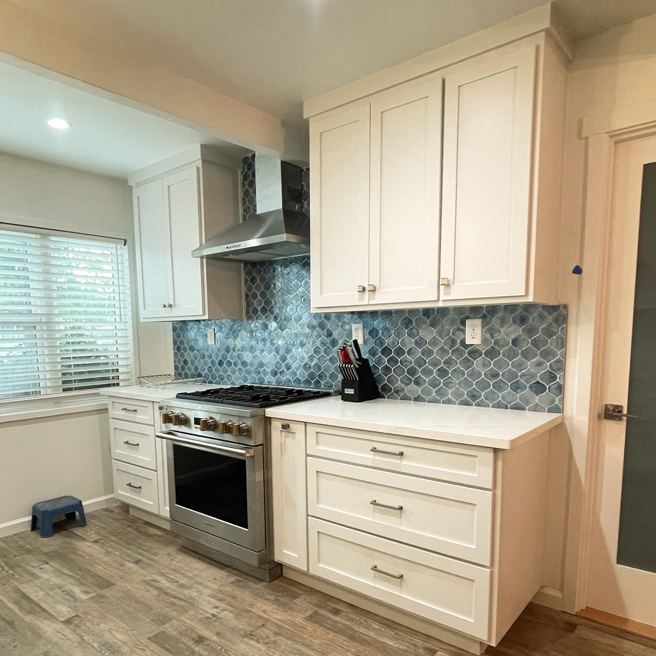 Our cabinet crew made this custom reception desk for a local dentist’s office here in Chico. The desk is covered in “Skin Rock” — a very thin rock veneer which allows the entire desk to be backlit. Watch the video clip to see the difference when the light turns on.
